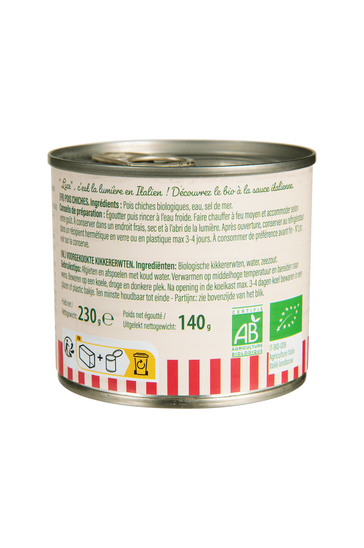 Nos pois chiches extra-fins bio en conserve Luce sont issus d'une culture respectant les normes de l'agriculture biologique certifiée UE. Ces mini-formats sont conditionnés par 3.