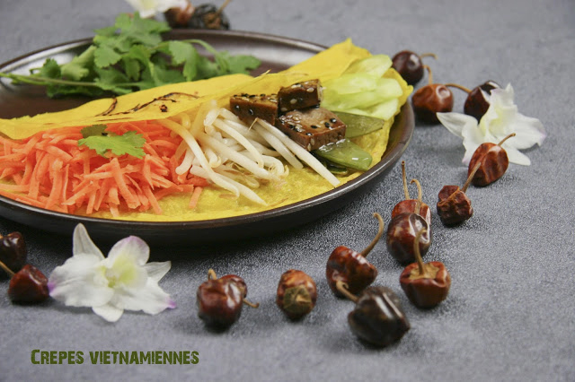 Etape 8Manger chaud. Vous pouver comme pour les galettes bretonnes, garnir vos crêpes vietnamiennes, au moment de la cuisson ou ensuite.